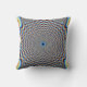 This sofa pillow features an optical illusion fractal in blue, gold and grey that resembles the feathers of a peacock. Unique and funky!