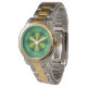 If you love the colours of a peacock, this design will be perfect with shades of green, gold and blue arranged from dark to light that give the circle a 3D look with some styling to resemble a feather. This watch is available in a variety of colours, sizes, and styles, including sizes for both kids and adults.