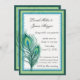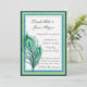 Fun peacock feather with aqua blue, seafoam green and multi coloured accent box. Fresh and stylish for today's bride. Hints of hydrangea in the background. Showcase your invitations in style!