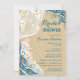 Elegant Peacock and lace theme with an Art Nouveau feel. Lovely Aqua and teal tones with white scrolled side panel. Background is a delicate tone on tone lace floral over sand background.. This Bridal Shower invitation is part of the Peacock Lace Elegance 2 Collection and matching items can be found in my store.
