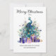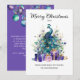 Peacock Merry Christmas Purple Blue Teal Holiday Card