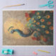 Delicate tilework mosaic of a peacock with its feathers on display.