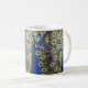 A beautiful mug depicting three images of peacocks with their tails on full display