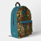 This Asian inspired backpack features lovely teal and blue peacocks with green and orange plumes and feathers, with lovely purple plum colored flowers and lanterns in a lovely old tree. The trim is in a coordinating peacock teal color, with your optional initials in gold on the side. Either replace the initial with your own or delete if you prefer not to have initials. This would make a nice gift for a student or a great bag for hauling your books, crafts, or gym clothes wherever you travel.