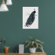 Poster with beautiful vintage illustration of a blue peacock on a branch.
