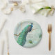 Peacock on Tree Branch Elegant Gold Leaf Look Paper Plate