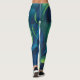 These leggings would feature a mesmerising, swirling abstract design with flowing lines in shades of blue, green, and neon yellow. The pattern creates a dynamic, almost wave-like effect, resembling the movement of leaves or water, giving the leggings an organic, fluid appearance. The rich combination of cool blue tones and vibrant greens adds a natural, yet futuristic vibe. These leggings would be eye-catching, perfect for someone who loves bold, artistic designs, making them a great fit for both workout wear or as a statement piece for casual outfits.