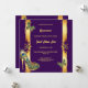 A beautiful, vibrant and luxurious design against a dark lapis purple background on which vertical faux gold bands appear with decorative golden swirls and peacock feathers. Small butterflies are flitting around and a stunning golden stilleto shoe adorned with peacock feathers appears in the bottom left corner. This graphic may be deleted if not required. Faux gold text templates appear down the middle of the 5x7 invitation and are fully customizable. The back has the same design, and additional templates for extra information you may want your guests and family to know. If not required, delete the wording to leave the back with the design only. This stylish, glam, elegant and traditional design is ideal for any 15th birthday Quinceañera or special birthday milestone celebration.