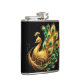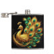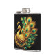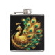 Peacock Showcasing Green and Yellow Plumage Hip Flask