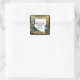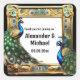 Two beautiful 5D (5 dimensional) looking regal peacocks with shimmering dark emerald green feathers and gold, blue and orange rosette spots are resting against a square golden frame adorned with peacock feathers. The frame encloses a white inlay on which black templates for your custom wording appear. The overall feel is chic, elegant, luxurious and classy. These are ideal for wedding favour gifts; bridal shower thank you's; wedding anniversaries and any event or function that has a peacock theme. Feel free to change the background edge colour to any colour of your choice.