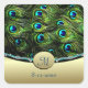 Peacock theme wedding envelope seals feature vibrant peacock feathers in shades of blues, aqua, various greens and gold. The bottom features gold wrapped around with a monogram seal on top. The sides of the monogram are decorated with elegant silver jewels and diamonds (accents). Change the monogram and wedding date by clicking on the orange customise button above or by using the personalise feature to the right of the sticker demo. If you love this design, scroll down to find matching wedding invitations, RSVP cards, and more.