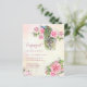 Victorian peacock vintage pink roses engagement budget invitation, with Indian palace in the background.