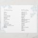 A peacock's call is brought to mind on this wedding program flyer. A classic illustration of a peacock in a tree in shades of light slate blue frames your customised text while the flowering branch is used as a watermark on both the exterior and interior. Just fold in half to make a booklet. Available in alternate colours with a range of matching products.