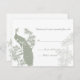 A peacock's call is brought to mind on this reply card A classic illustration of a peacock in a tree in shades of sage green frames your reply text while the flowering branch is used as a watermark on both the front and back. Available in alternate colours with a range of matching products.