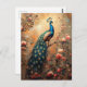 A graceful and elegant painting featuring a majestic peacock adorned with iridescent blue and green feathers, beautifully contrasted by delicate blush pink roses. The peacock’s plumage cascades in intricate detail, shimmering with hints of gold and teal, while the soft, romantic roses weave through the scene, adding a touch of vintage charm.