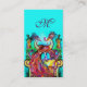 PEACOCKS IN LOVE MONOGRAM,Red Aqua Blue Turquoise Business Card