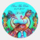 PEACOCKS IN LOVE MONOGRAM Save the Date Classic Round Sticker