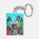 PEACOCKS IN LOVE red teal blue green Key Ring