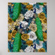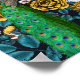 Hand- drawn pattern with peacocks and various roses on a dark background