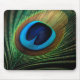 Experience the breathtaking beauty of nature with this stunning macro photograph of a peacock feather. This close-up view reveals the intricate details and vibrant, iridescent colors of the iconic "eye" pattern. Deep sapphire blue and electric turquoise swirl at the center, framed by a radiant halo of metallic bronze and shimmering emerald green. The delicate, thread-like texture of the feather's structure adds to the overall sense of elegance and natural wonder, making it a captivating piece of art.