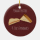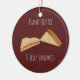 Ornament with two peanut butter and jelly sandwich characters. All of the text can be customised.