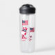 The bottle looks even better in real life. The ice cubes I put in lasts all day! I have my bottle with me all the time. It's summer and having something cold to drink feels amazing. With this bottle I always have something super cold. I have only tried the hot drink once and it lasted a long time as well. The color blue is a navy blue and the white printed on it is vibrant. It printed perfectly. I love my personalized smile water bottle.