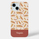 A phone case with peanuts pattern and, at the bottom, a customisable first name or text of your choice on a reddish brown background. A lovely gift for a friend who loves nuts.