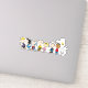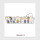 Check out this lineup of the Peanuts gang together, featuring Schroeder and Lucy, Linus with his blanket, Charlie Brown and his sister Sally, Pigpen, Franklin watching Snoopy dance, and Woodstock flying overhead.