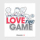 Check out Charlie Brown, Franklin, Peppermint Patty, and Snoopy running and playing soccer together in uniform, over the words: "Love The Game".