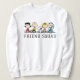 Check out Lucy, Charlie Brown, Snoopy, Sally, and Linus sitting together in a row.
