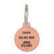 The pet tags that arrived in the post were as I wanted them. It was fun designing the tags and to have something personal for my dog. :). I was pleased with the printing and the materials used to make the dog tags.