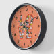 The size of the clock is dramatic and the abstract alcohol ink design is soothing and intricate at the same time. I chose the black frame that adds pop to the blue and gold design. The gold printing would be better in a slightly darker or larger font. I love it and I’m looking for just the right place in ny new apartment. I would recommend this clock for a personal gift or a present. I feel that the quality is excellent for the money! I’m a bit of a clock nut so I’m pretty particular about my purchases. The clock is larger in diameter than many if the clocks I have, so it stands out very well. I think a slightly darker printing color and a moderately larger size would best suit a professional decor or add more impact in a work place item.
