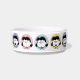 This is a heavy, durable bowl decorated with Tibbies of many colors, the perfect size for hungry/thirsty Tibs. The design is interesting and printing clear.