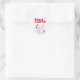 This circular Peanuts sticker is set against a soft, light pink background. The top features a prominent, colourful message: "Peace on EARTH," with "Peace" in purple and "EARTH" in red. A small blue ornament with the word "on" hangs above the text. The illustration below shows Snoopy wearing a purple winter hat and looking down at Woodstock, who is dressed as a tiny caroler and playing a horn. A musical note floats in a thought bubble next to them. This officially licensed sticker is a thoughtful, nostalgic piece of seasonal merchandise, perfect for decorating gifts, sealing envelopes, or celebrating the holiday spirit with a classic message of peace.
