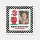 Add a personalized touch of fun to your party table with this adorable Peanuts photo napkin! This square napkin features a classic black and white diagonal striped border for a bold look. The center is customized with a cheerful photo of the birthday child. The iconic Snoopy is nestled on his red doghouse beneath the age number. Below the images, the napkin is finished with a sweet message: "HAPPY BIRTHDAY." It's the perfect disposable item that doubles as a cute, memorable photo keepsake for a child's birthday celebration!