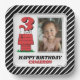 Set a super stylish party table with this customized Peanuts birthday plate! This square plate features a bold black and white diagonal striped border for a fun, striking look. The center is a personalized delight, showcasing a cheerful photo of the birthday child right next to a large "3" graphic. The iconic Snoopy is napping happily on his red doghouse, situated beneath the age number. Below the images, the plate displays the clear, festive message. This customized piece is perfect for serving cake and makes a cute, memorable photo keepsake from the celebration!