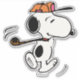 Snoopy, the beloved beagle from the Peanuts comic strip, is depicted in this design swinging a golf club.