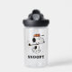 Snoopy, the beloved beagle from the Peanuts comic strip, is depicted in this design swinging a golf club.