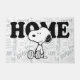 This Peanuts artwork features Snoopy sitting on background of black and white Charles M. Schulz comic strips.