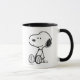 This Peanuts artwork features Snoopy sitting on background of black and white Charles M. Schulz comic strips.