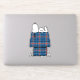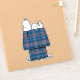 Celebrate the holidays and your love of Peanuts with this cute design featuring Snoopy asleep on his dog house covered in plaid.