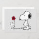 Say it with Peanuts! This beautiful horizontal greeting card features the timeless, heartwarming moment between best friends, Snoopy and Woodstock. With Woodstock proudly presenting a flower with a vibrant red bloom to Snoopy, this card is the perfect way to share affection, thanks, or encouragement.
