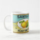 A vintage label for Santa Fe Pear Butter repurposed on a mug.