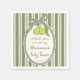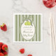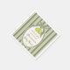 Pear sage green retro stripes baby shower personalized napkins, retro oval frame hand drawn preppy bow pear baby shower monogrammed napkins, hand written whimsical baby shower personalized napkins, pear baby shower party supplies personalized baby shower table decor
