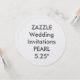 Custom Personalised PEARL SHIMMER Wedding Invitations - 5.25" ROUND CIRCULAR. This smooth, cool white hued paper is the perfect designer backdrop for your most special milestones. Features a luxuriously satin texture enhanced with a shimmer sparkle finish. MADE IN ITALY. 110lb, 14.3 point thick card. Imported from Italy by Fedrigoni, est. 1888 in Verona, a family-owned, eco-conscious paper makers. Big bulk buy multi purchase discount savings on invitation cards, up to 50% off your purchases for multiple item orders. Zazzle Wedding Invitations - Create, make, design your own custom wedding invites from this fully customisable, personalised Zazzle invitation card design template blank. High quality, full-colour, full-bleed printing on both sides with Standard or HIGH-DEFINITION print options. Size Options: 5" x 7", 4.25" x 5.5", 3.5" x 5", 4" x 9.25", 5.25" x 5.25", 4.5" x 6.25", 5.5" x 7.5", 6.5" x 8.75”. Orientation Options: Vertical (portrait) or horizontal (landscape). Finish Options: Semi-gloss, Matte, Ultra-thick, Laid, Linen, Columned, Felt White, Felt Ecru, Kraft, Pearl Shimmer, Champagne Shimmer & Metallic Silver. Card Shape & Style Options: Standard or Rounded Corners (all sizes); Bracket, Scalloped, Ticket or Tag (5” x 7” only); Circular (5.25” only). Standard white envelopes included, with upgrade options. Perfect for wedding invites, bachelorette, bridal shower, rehearsal dinner, save the date etc, and for any RSVP party invitations, such as anniversary, birthday, sweet sixteen and Quincenera; or for corporate event & exhibition invites - for photo, image, text, bride & groom, or your own unique personalised design creation.