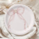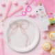 Pearl Blush Pink Bow Gold Cross Baptism Paper Plate