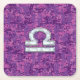 Pearl Libra Zodiac Sign on Fuchsia Digital Camo Square Paper Coaster