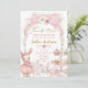 Pearl Pink Bow Coquette Bunny Baby Shower Invitation