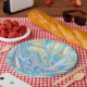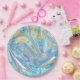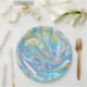 Pearlescent Aqua & Gold Liquid Marble Paper Plate