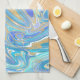 Pearlescent Aqua & Gold Liquid Marble Tea Towel
